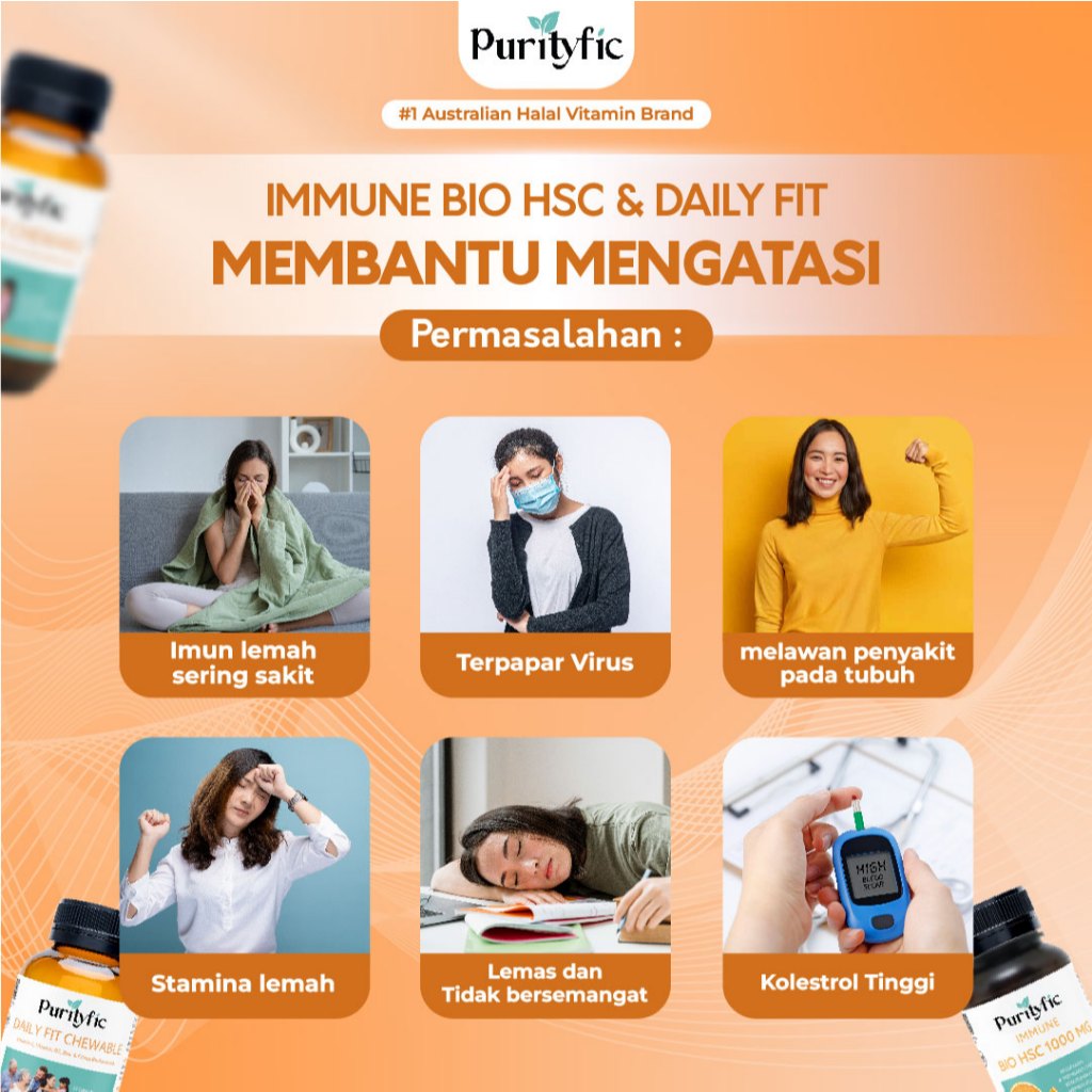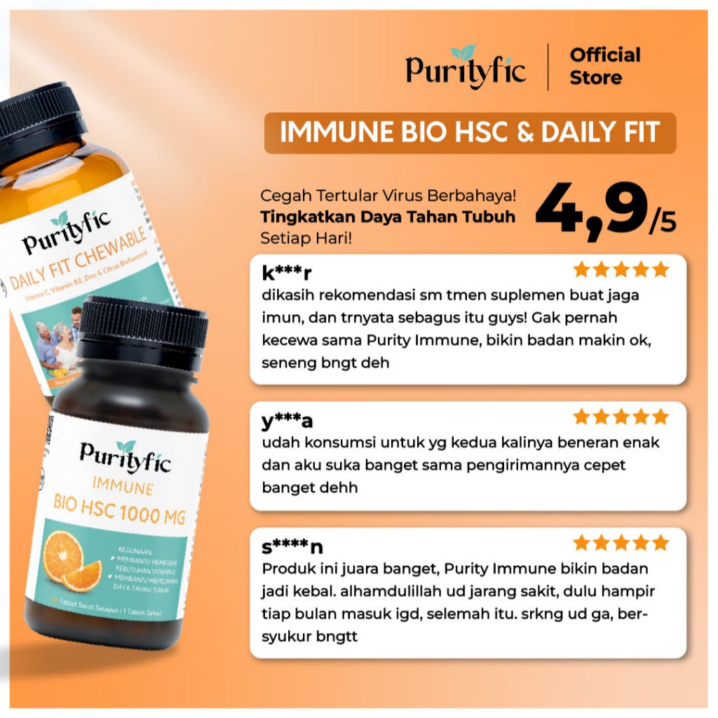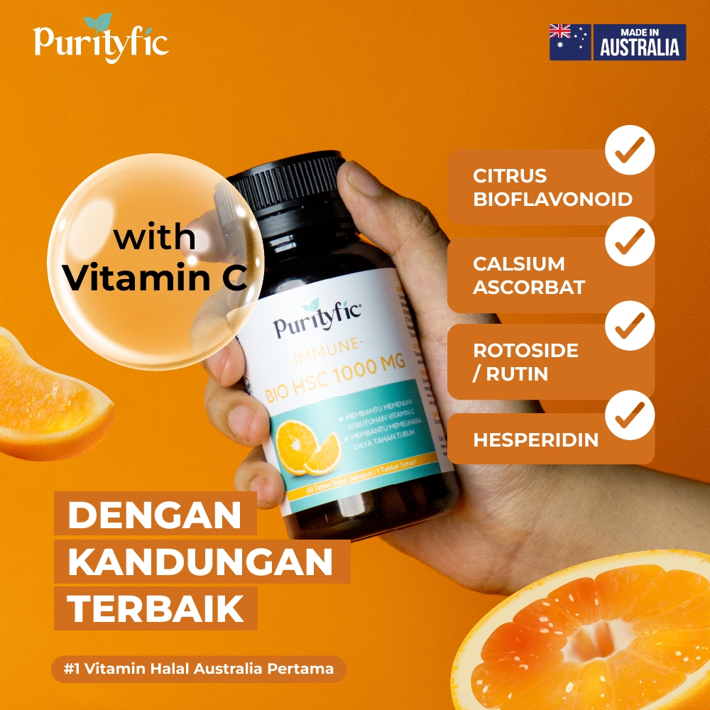 Purityfic Immune Bio HSC 1000mg 60 Tablet mangandung Vitamin C yang sangat dibutuhkan oleh tubuh