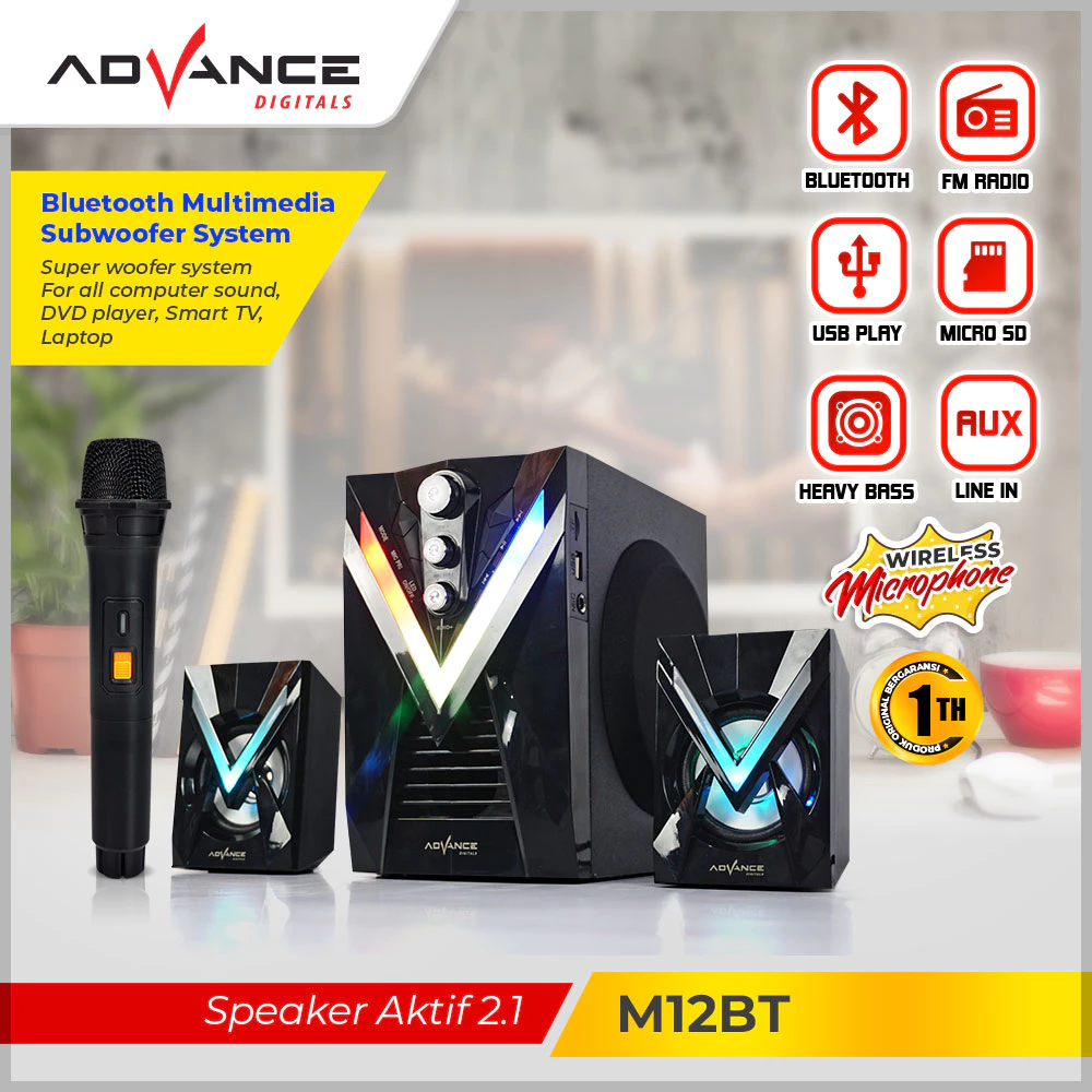Advance M12BT Speaker Multimedia Bluetooth Karoke Mic Wireless RGB led