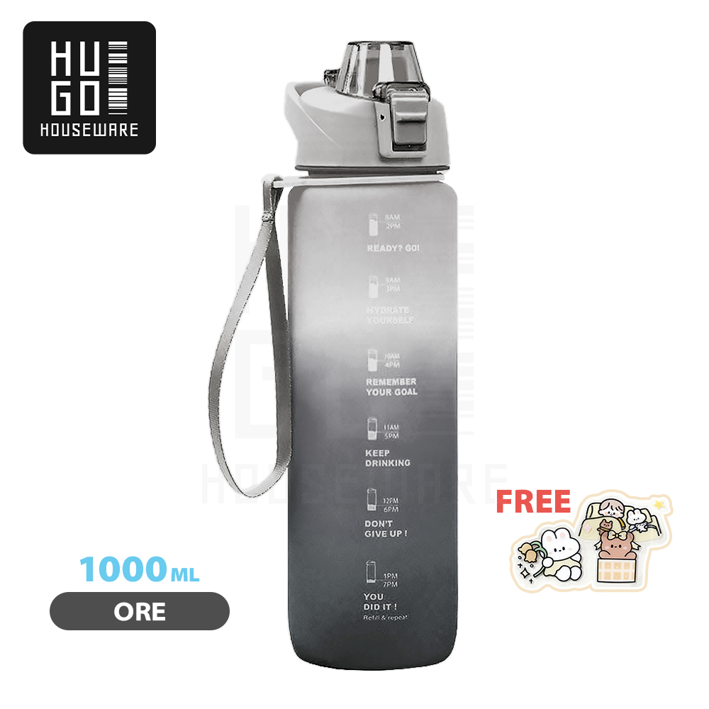 HUGO Botol Minum Motivasi Tutup Flip 1 Liter Rainbow Gratis Stiker