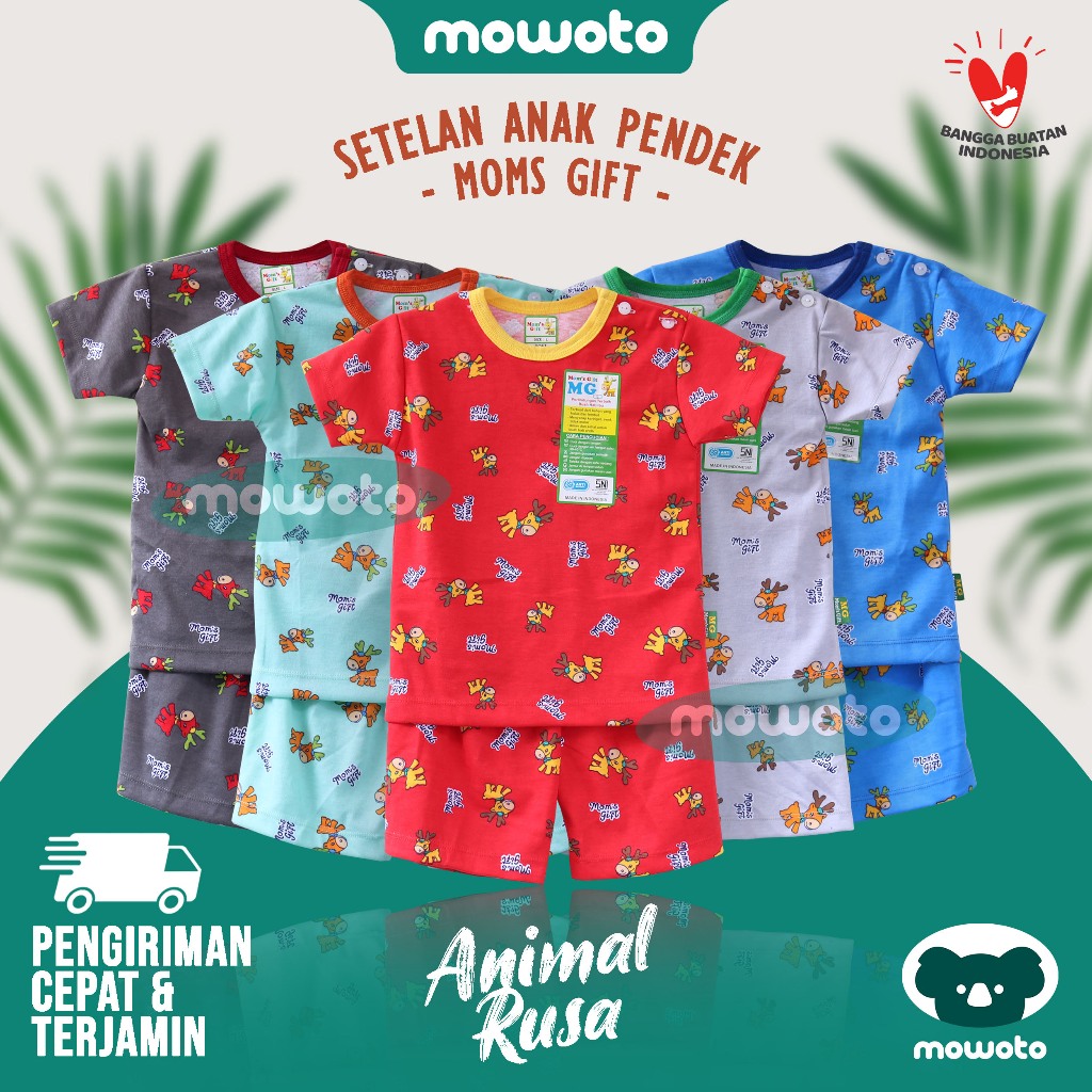 * Setelan moms gift dengan model kaos lengan pendek dan celana pendek hadir untuk si Buah Hati menemani tidur malamnya yang lelap.