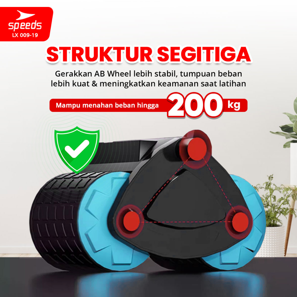 Ab Roller 2 Wheels Automatic Rebound With Plank Trainer + Timer Automati (Free Matras Lutut)